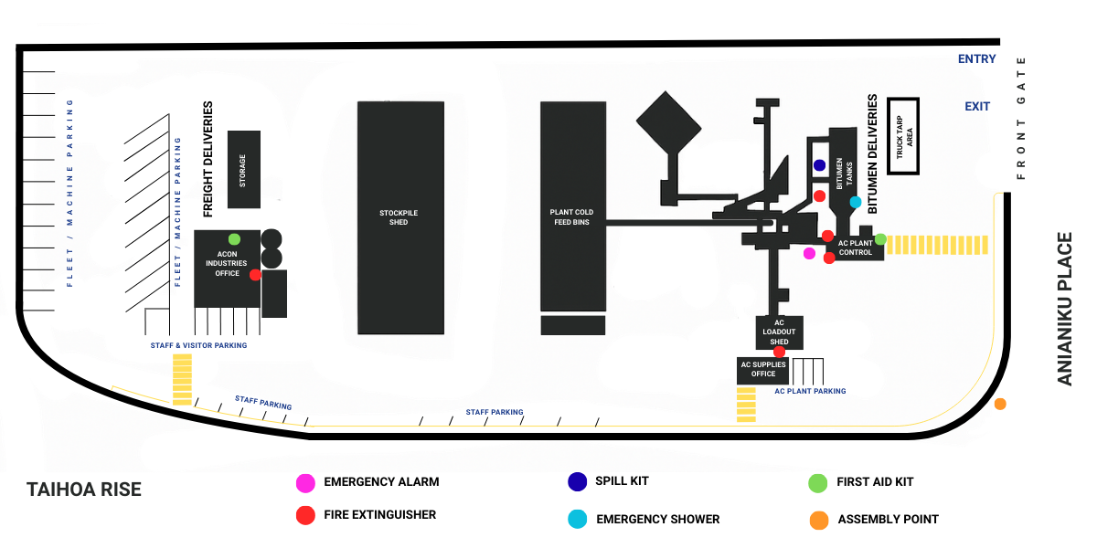 Welcome to Acon Industries. On our site we have a live asphalt manufacturing facility with heavy vehicle movements, hot bitumen, and operational plant. Your safety while visiting is our priority.